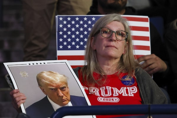 An attendee listens as former U.S. President Donald Trump speaks at a campaign rally, on Dec. 16, in Durham, N.H.Reba Saldanha/The Associated Press