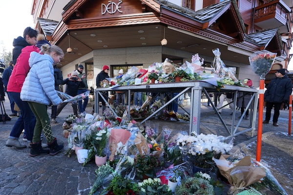 People bring flowers and letters near the Le Constellation bar in Crans-Montana, Switzerland, on Friday.Antonio Calanni/The Associated Press