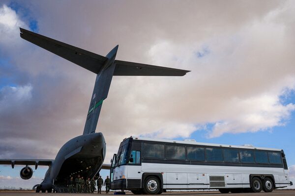 Several of the migrants arrested by ICE are ending up on military aircraft to be flown out of the country, as these people are in El Paso, Texas.