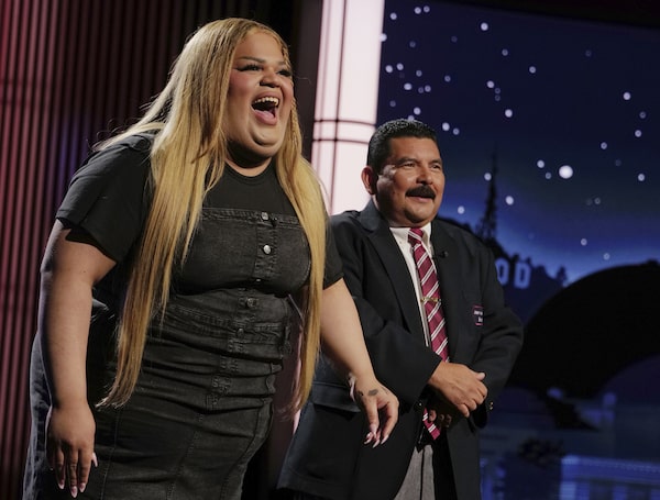 TikTok creator Jools Lebron, left, with talk show personality Guillermo Rodriguez on the set of Jimmy Kimmel Live! on Aug. 19 in Los Angeles.Randy Holmes/The Associated Press