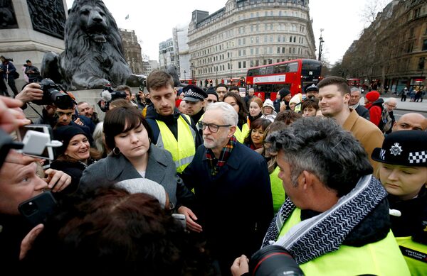 Britain's Labour Party leader Jeremy Corbyn attends a protest to oppose the threat of war with Iran, in London, Britain January 11, 2020.HENRY NICHOLLS/Reuters