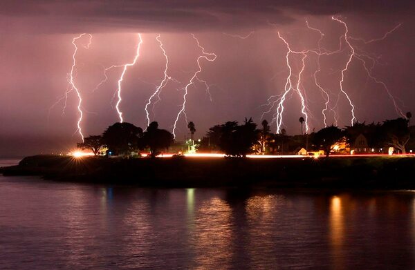 A rare lightning storm crackles over Mitchell's Cove in Santa Cruz, California around 3 a.m. Sunday morning August 16, 2020.The Canadian Press