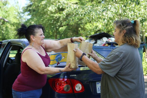 Helen Cruz hands out lunches to homeless people in a park in Grant Pass, Oregon, on May 14.Nathan VanderKlippe/The Globe and Mail