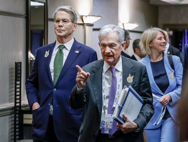 U.S. Treasury Secretary Scott Bessent, left, says there are candidates on the board to replace Fed Chair Jerome Powell, right and it will be President Trump's decision who to nominate.Jeff McIntosh/The Canadian Press
