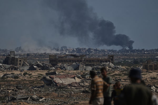 Smoke rises after an Israeli strike in Gaza City on Thursday.Abdel Kareem Hana/The Associated Press