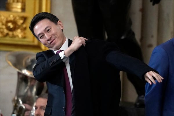 TikTok CEO Shou Chew puts on his coat after the 60th Presidential Inauguration in the Rotunda of the U.S. Capitol in Washington, Monday, Jan. 20, 2025.Julia Demaree Nikhinson/The Associated Press