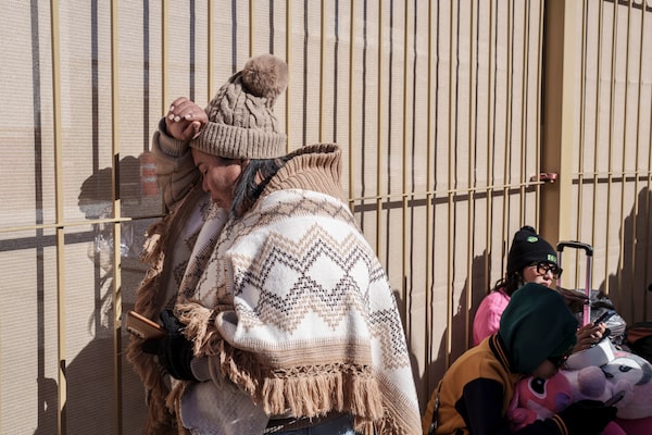 Margelis Tinoco, 48, a migrant from from Colombia, cries in Ciudad Juarez, Mexico, after learning that her appointment to present herself at a port of entry and seek asylum through U.S. immigration courts had been cancelled on Monday, Jan. 20, 2025.PAUL RATJE/The New York Times News Service