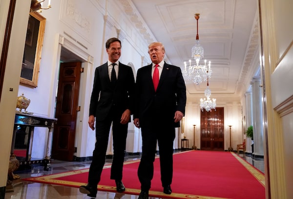 U.S. President Donald Trump and then-Netherlands' Prime Minister Mark Rutte arrive to take part in a D-Day flag presentation at the White House in 2019.KEVIN LAMARQUE/Reuters