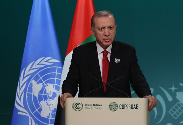 Turkish President Recep Tayyip Erdogan speaks on day one of the high-level segment of the UNFCCC COP28 Climate Conference at Expo City Dubai in Dubai on Dec. 1.Sean Gallup/Getty Images