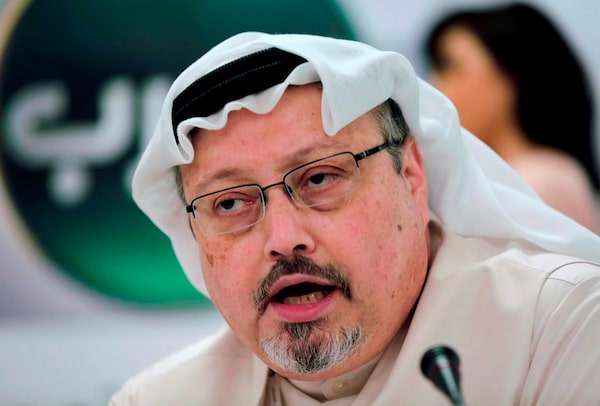 Saudi journalist Jamal Khashoggi speaks during a news conference in Manama, Bahrain, in a Dec. 15, 2014, file photo.The Associated Press