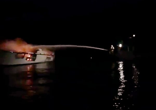 This image from a video released by TowBoatUS Ventura shows the Conception burning before it sank early Monday.Capt. Paul Amaral/The Associated Press
