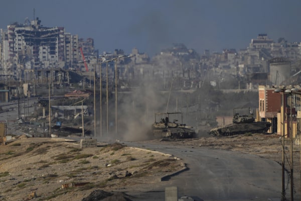 Israeli army tanks are seen in Wadi Gaza, central Gaza Strip, on June 26.Abdel Kareem Hana/The Associated Press