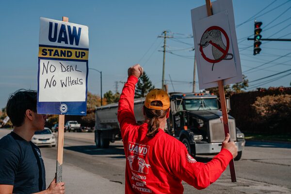 Members of the United Auto Workers union picket outside of a Ford assembly plant in Chicago on Oct. 24, 2023.JAMIE KELTER DAVIS/The New York Times News Service
