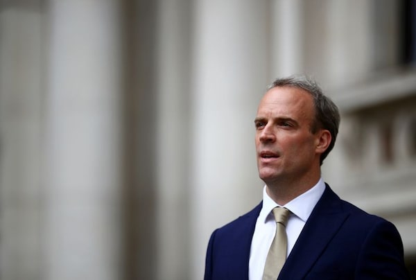 Britain's Foreign Secretary Dominic Raab makes a statement on Hong Kong's national security legislation in London, Britain, July 1, 2020.HANNAH MCKAY/Reuters