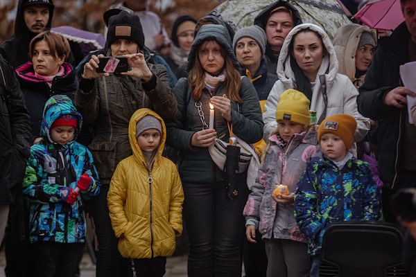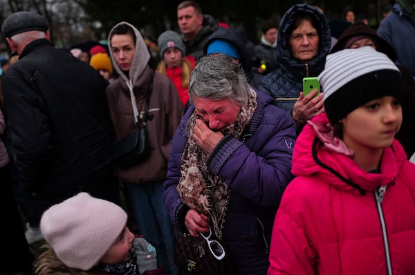 Residents of Bucha attend a commemoration ceremony devoted to the Anniversary of the city's liberation from Russian occupation, in Bucha, Ukraine, March 31, 2023.ANTON SKYBA/The Globe and Mail