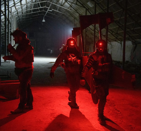 Tuesday’s mission began on an ominous note. “There are a lot of Orlans above us, so we’re changing the plans a little,” Evrei said, referring to a model of Russian reconnaissance drone, as he and Most – both 45-year-old residents of Kyiv – hunched over a premission meal of borscht, tea and perogies. (Evrei’s code-name means “Jew,” even though he’s not Jewish, while “Most” means “Bridge” in Russian, the mother tongue of both men. The Globe is using only the code names of the two colonels since HUR special-forces officers are otherwise not allowed to speak to the media.)
