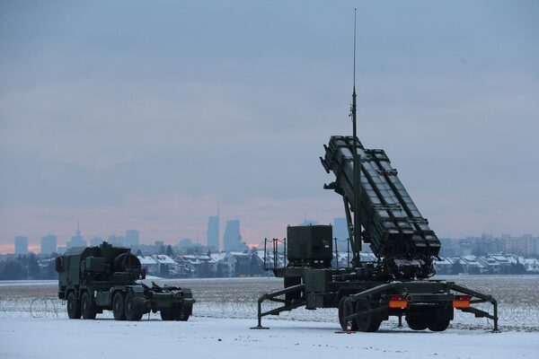 Patriot air defence system with a view of Warsaw skyscrapers in the background is seen during Polish military training on the missile systems at the airport in Warsaw, Poland on Feb. 7, 2023.KACPER PEMPEL/Reuters