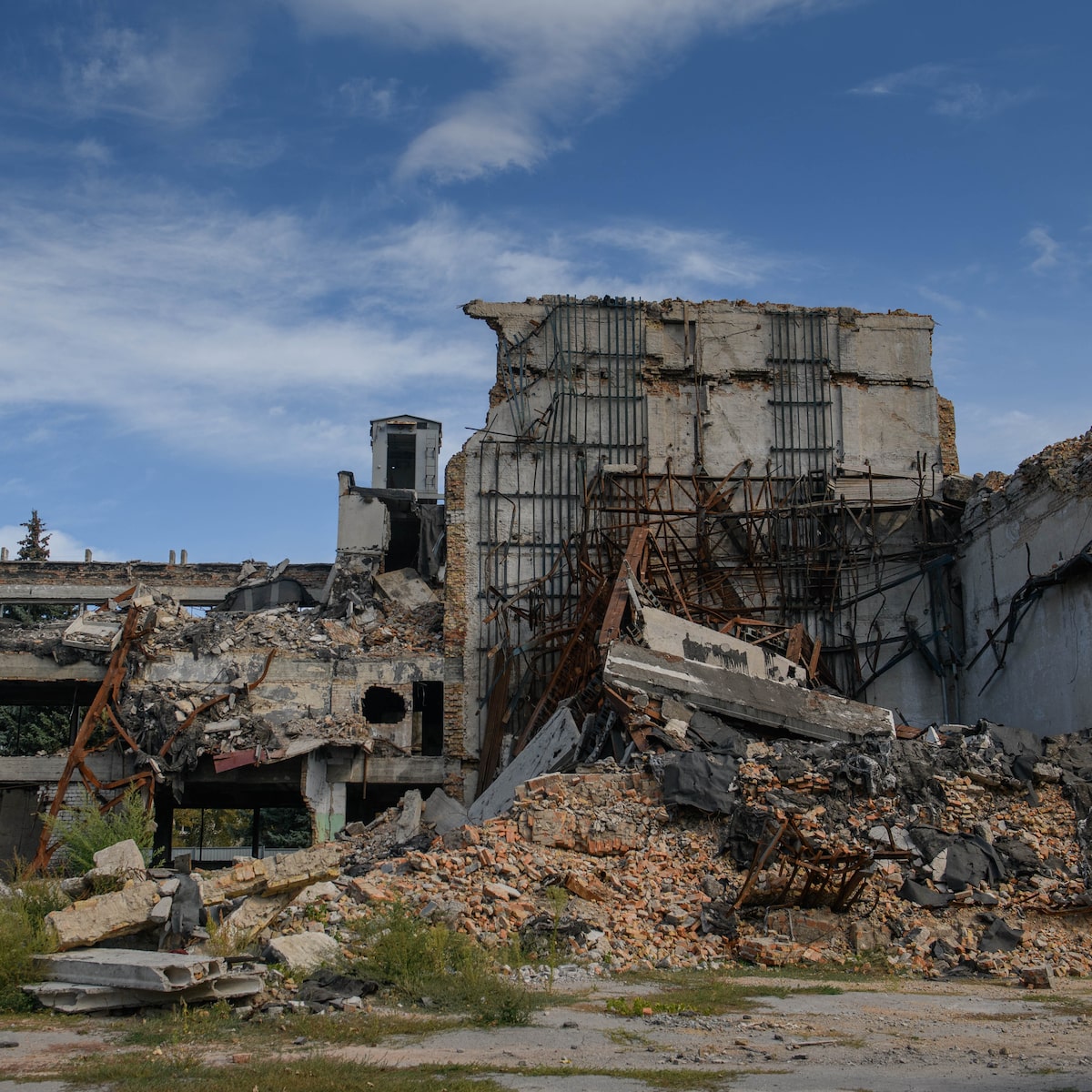An explosion last summer obliterated the city’s House of Culture, which once hosted plays and concerts for crowds of up to 1,000 people. Today, only the front wall of the building still stands. The city’s nearby main public swimming pool complex has also been destroyed after an apparent drone strike collapsed its roof.