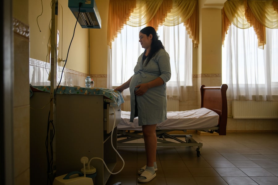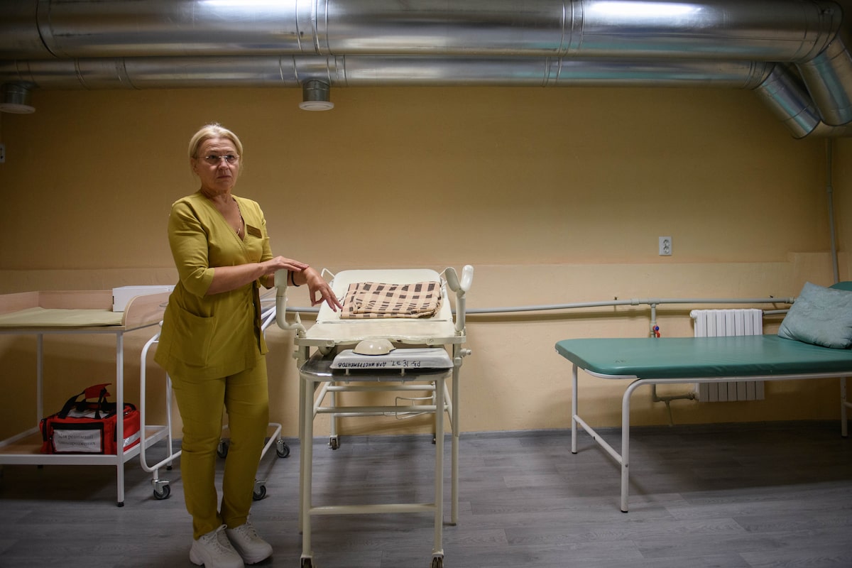 This hospital in Pavlohrad has a maternity ward in the basement in case patients like Tetyana Kotenko, the pregnant woman in the top photo, are ready to deliver when Russian drones are sighted nearby.