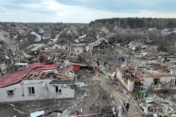 A drone view of houses that were destroyed and heavily damaged during a Russian missile strike in the town of Korosten in Ukraine on Friday.Valentyn Ogirenko/Reuters
