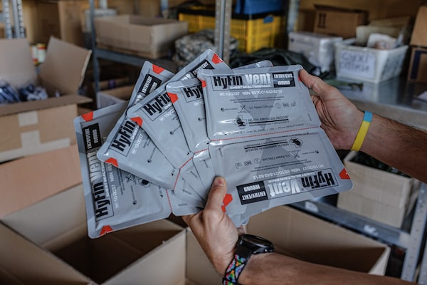 Ukraine relies on foreign sources for many kinds of life-saving equipment, like these U.S.-made packs for sealing chest wounds.