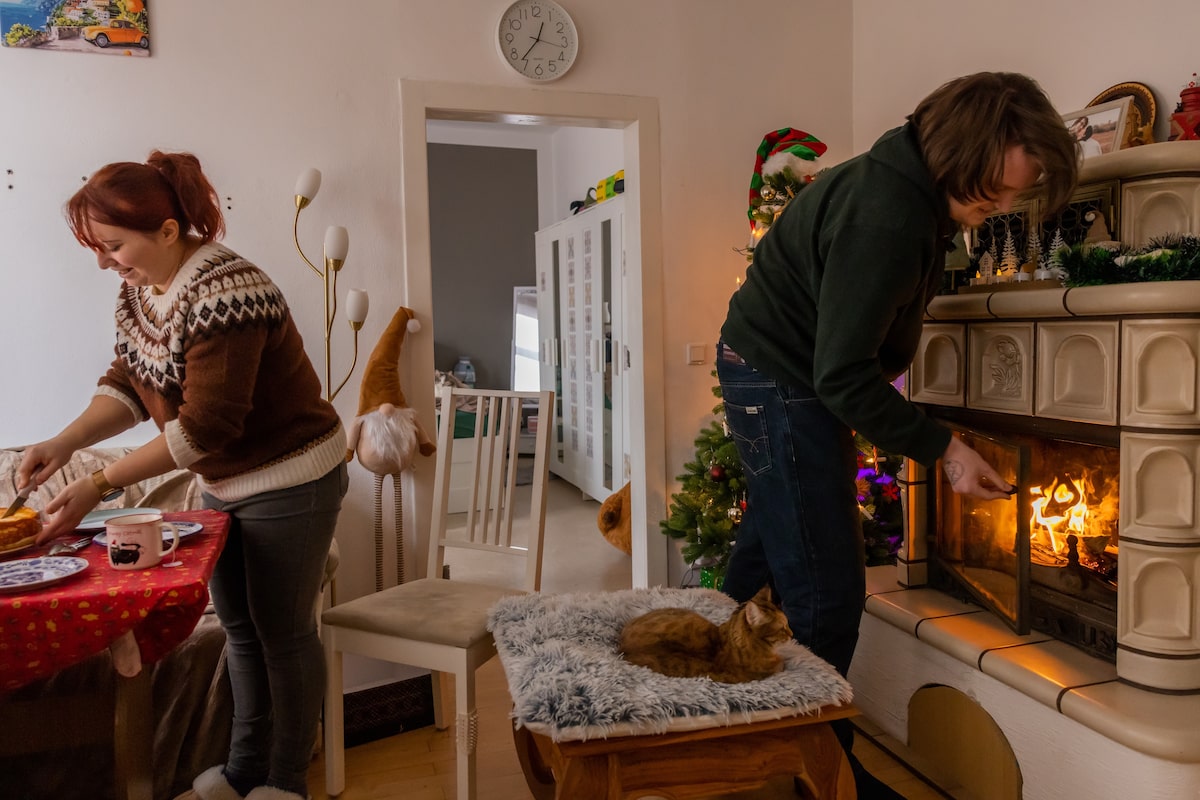 Last summer they bought a three-storey building on Hartha’s main street for €85,000. There used to be a bridal shop on the main floor, which is still full of boxes and old furniture. There are two kitchens on separate floors, but most of the appliances have seen better days. And the heating barely works. But they love it and are slowly turning the building, and Hartha, into a home.