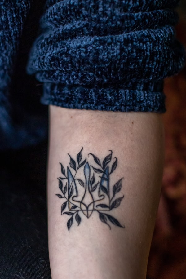 Yevheniiya Fedorova got a Ukrainian trident tattoo in Germany, where she and her husband, George Fedorov, eventually settled after fleeing Odesa.