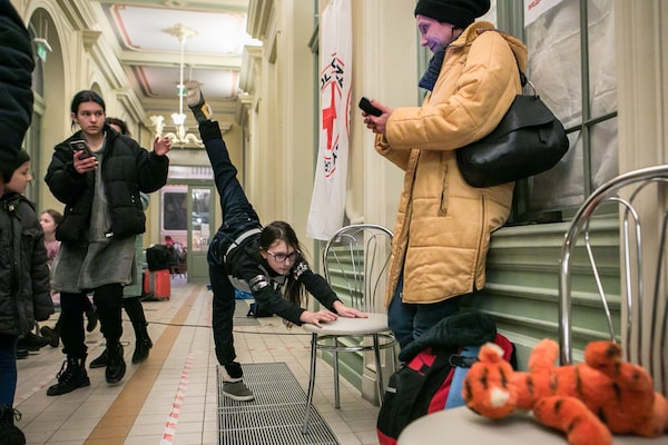 She hadn’t been alone in helping young Dasha and Liza. Three women Ms. Chrishechkina met in line also watched over the girls and joined in the wait at the station. Among them was Natalie Vtoryhina, who fled Kyiv on Wednesday with her 11-year-old daughter, Barbara, a budding gymnast.