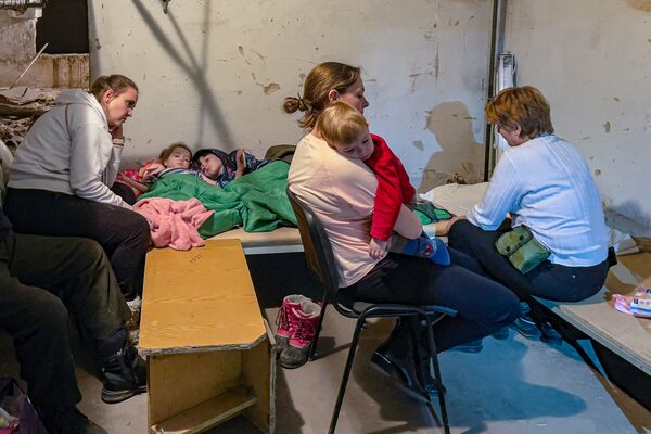 Patients and residents of Chernihiv hide in the shelter at the hospital.
