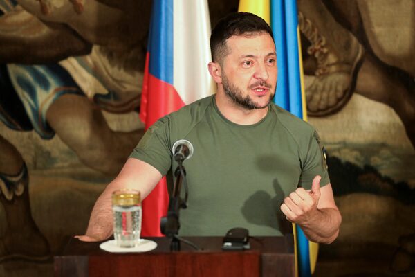 Ukraine's President Volodymyr Zelenskiy delivers remarks after a meeting with Czech President Petr Pavel, at Prague Castle in Prague, Czech Republic, on July 6.STRINGER/Reuters