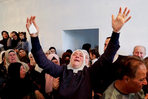 A mourner reacts during the funeral of Palestinian Yazan Ishtayeh, who was killed in an Israeli raid, in Salim, near Nablus, in the Israeli-occupied West Bank, on April 15.Raneen Sawafta/Reuters