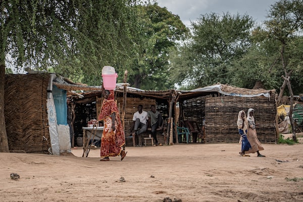 Children walk through the Korsi refugee camp, in Birao, Central African Republic, on August 10, 2024. Over 80 per cent of the camp's residents are women and children who have fled war in neighbouring Darfur in search of safety.AMAURY FALT-BROWN/AFP/Getty Images