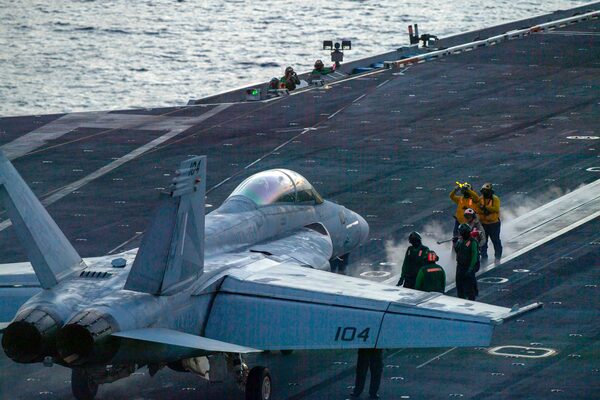In this photograph released by the U.S. Navy, an F/A-18 Super Hornet prepares to launch off the flight deck of the Nimitz-class aircraft carrier USS Theodore Roosevelt, in the South China Sea, on July 5.Seaman Aaron Haro Gonzalez/The Associated Press