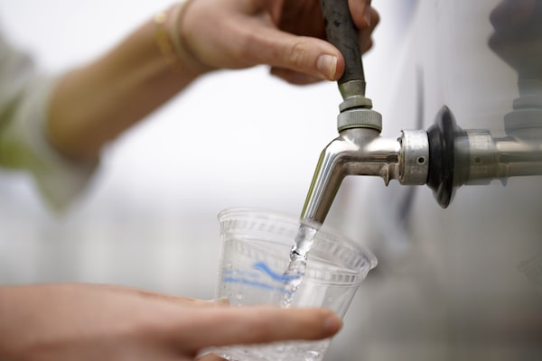 An official at the Carlsbad desalination plant in California fills a cup with filtered water made from ocean water.Gregory Bull/The Associated Press