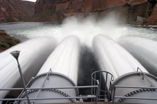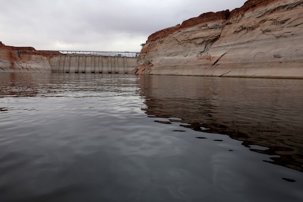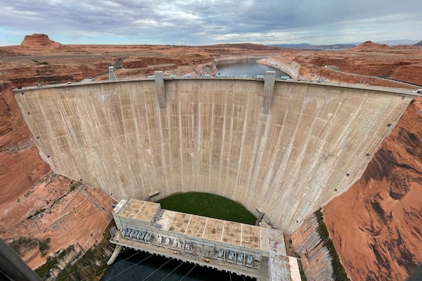 The Glen Canyon Dam in northern Arizona, near the border with Utah, holds back water in the Lake Powell reservoir, which has fallen to low levels that threaten the electrical output of the dam.Nathan VanderKlippe/The Globe and Mail