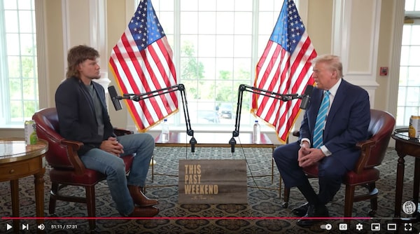 Republican presidential nominee Donald Trump speaks to Theo Von the podcast, This Past Weekend.Quadri, Omair/The Globe and Mail