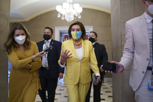 Speaker of the House Nancy Pelosi, D-Calif., leaves the chamber at the Capitol in Washington on Aug. 24, 2021.J. Scott Applewhite/The Associated Press