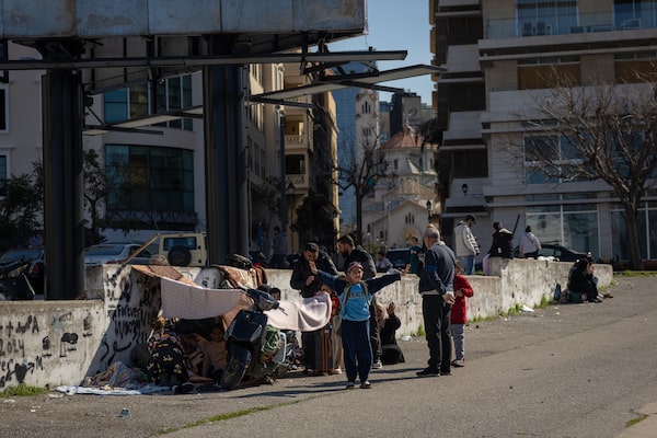 A family takes refuge in Martyr’s Square in downtown Beirut after fleeing their home in the southern suburbs with their suitcases, following Israeli air strikes on the capital of Lebanon on March 2.Oliver Marsden/The Globe and Mail