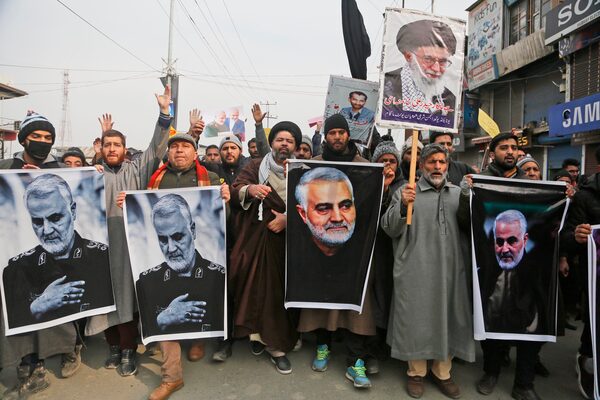 Kashmiri Shi'ite Muslims shout slogans during a protest against a U.S. air strike in Iraq that killed Iranian Revolutionary Guard Gen. Qassem Soleimani, in Indian controlled Kashmir, on Jan. 3, 2020.Mukhtar Khan/The Associated Press