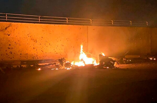 This photo released by the Iraqi Prime Minister Press Office shows a burning vehicle at the Baghdad International Airport following an airstrike, in Baghdad, Iraq, early Friday, Jan. 3, 2020.The Canadian Press