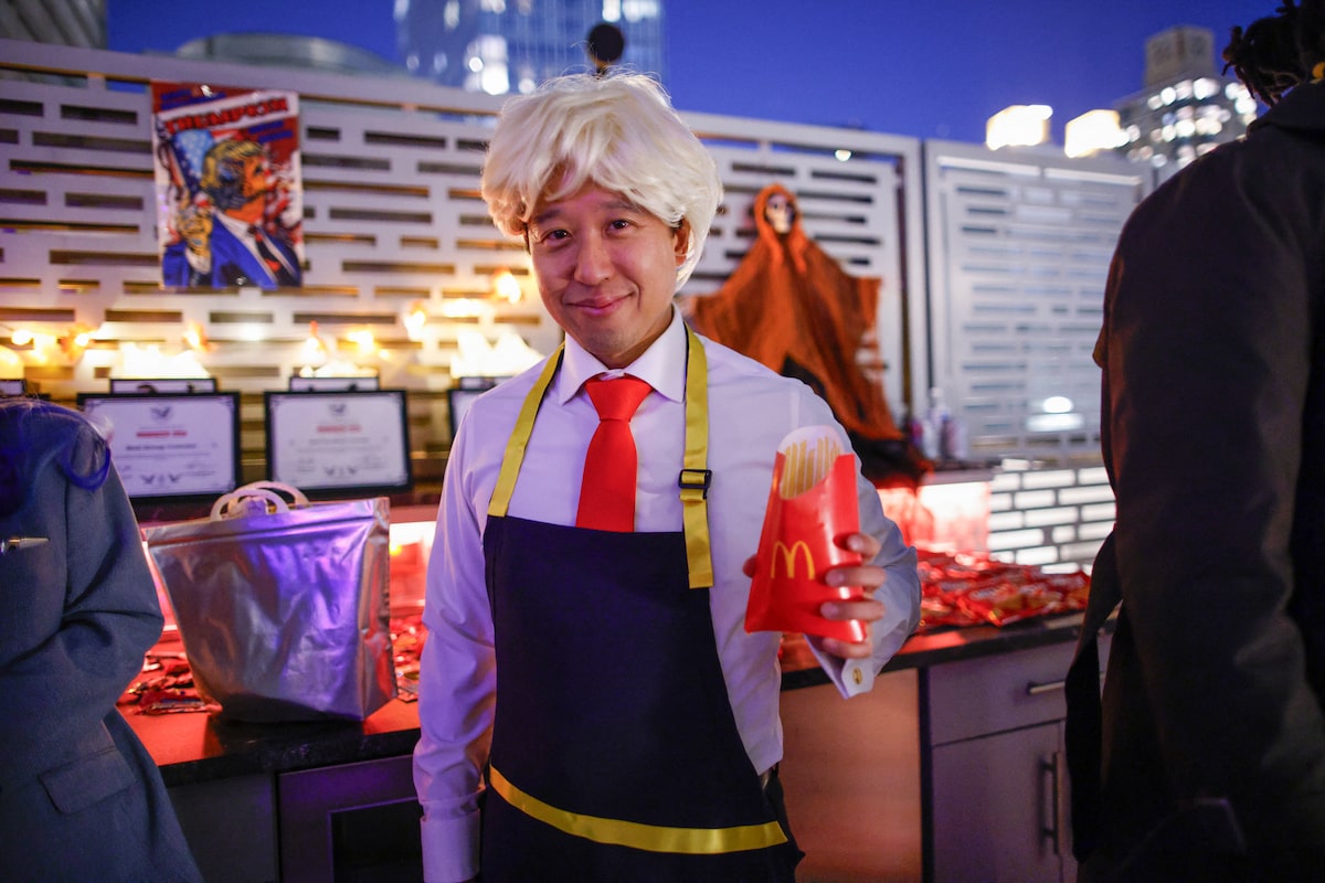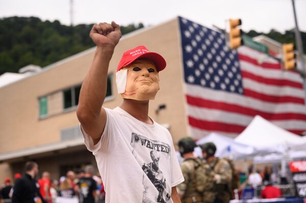 This Trump supporter's mask in Johnstown, Pa., has a bandaged ear and bloody chin evoking the ex-president's injuries after a gunman shot him at a rally in July. Not since 1968 has anyone come so close to assassinating a presidential candidate.Justin Merriman/Getty Images