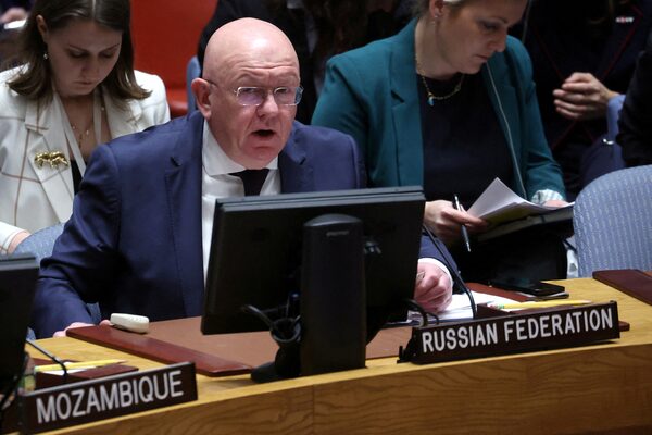 Russia’s U.N. Ambassador Vassily Nebenzia and deputy U.S. Ambassador to the U.N. Robert Wood traded the accusations at a U.N. Security Council meeting on Ukraine, requested by Moscow. Russia invaded neighboring Ukraine nearly two years ago.