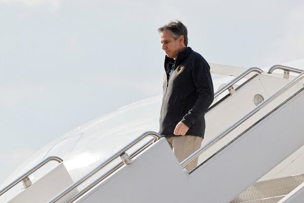 U.S. Secretary of State Antony Blinken arrives at Incirlik Air Base near Adana, Turkey, on Feb. 19.CLODAGH KILCOYNE