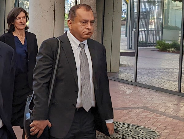 Ramesh 'Sunny' Balwani, right, the former lover and business partner of Theranos CEO Elizabeth Holmes, walks into federal court in San Jose, Calif., on June 24.Michael Liedtke/The Associated Press