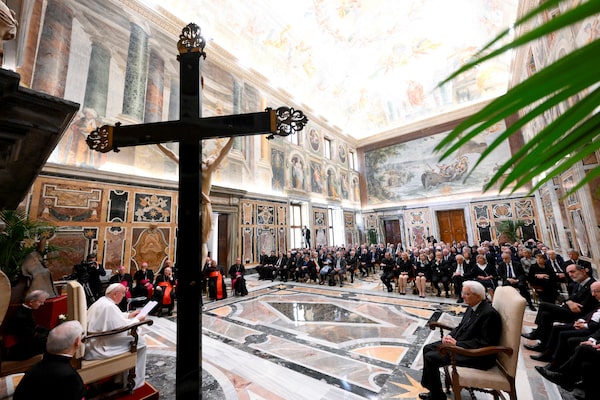 Pope Francis presents the Paolo VI Prize of Brescia to Italian President Sergio Mattarella at the Vatican, on May 29.VATICAN MEDIA/Reuters