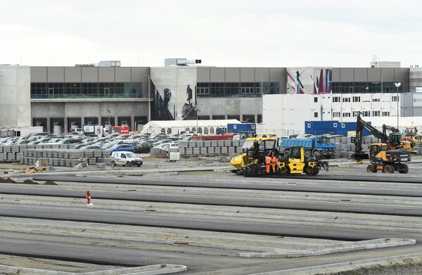People work at the construction site of Tesla's electric car factory in Gruenheide, near Berlin, Germany, on March 4.ANNEGRET HILSE/Reuters