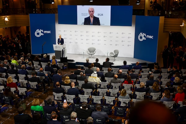 Yulia Navalnaya, wife of Russian opposition leader Alexei Navalny, speaks during the Munich Security Conference, in Munich, Germany, on Feb. 16.Kai Pfaffenbach/The Associated Press