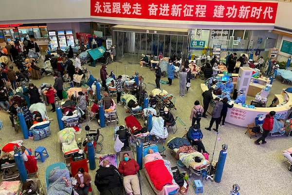 Patients, most of them elderly with COVID symptoms, receive medical treatment at the Changhai Hospital in Shanghai, China, Jan. 3.The Associated Press