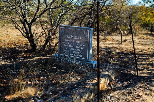 A mass grave, shown in 2018, bears the names of six victims of the Matabeleland massacres.Jerome Delay/The Associated Press