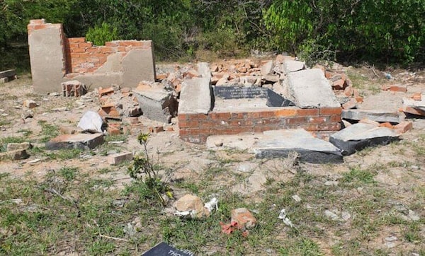 A memorial plaque in Maphisa, Zimbabwe, lies in ruins on Jan. 4 after state security agents destroyed it. It honoured the victims of Operation Gukurahundi, a crackdown on dissidents that ran from 1983 to 1987.Sakhele Hadebe
